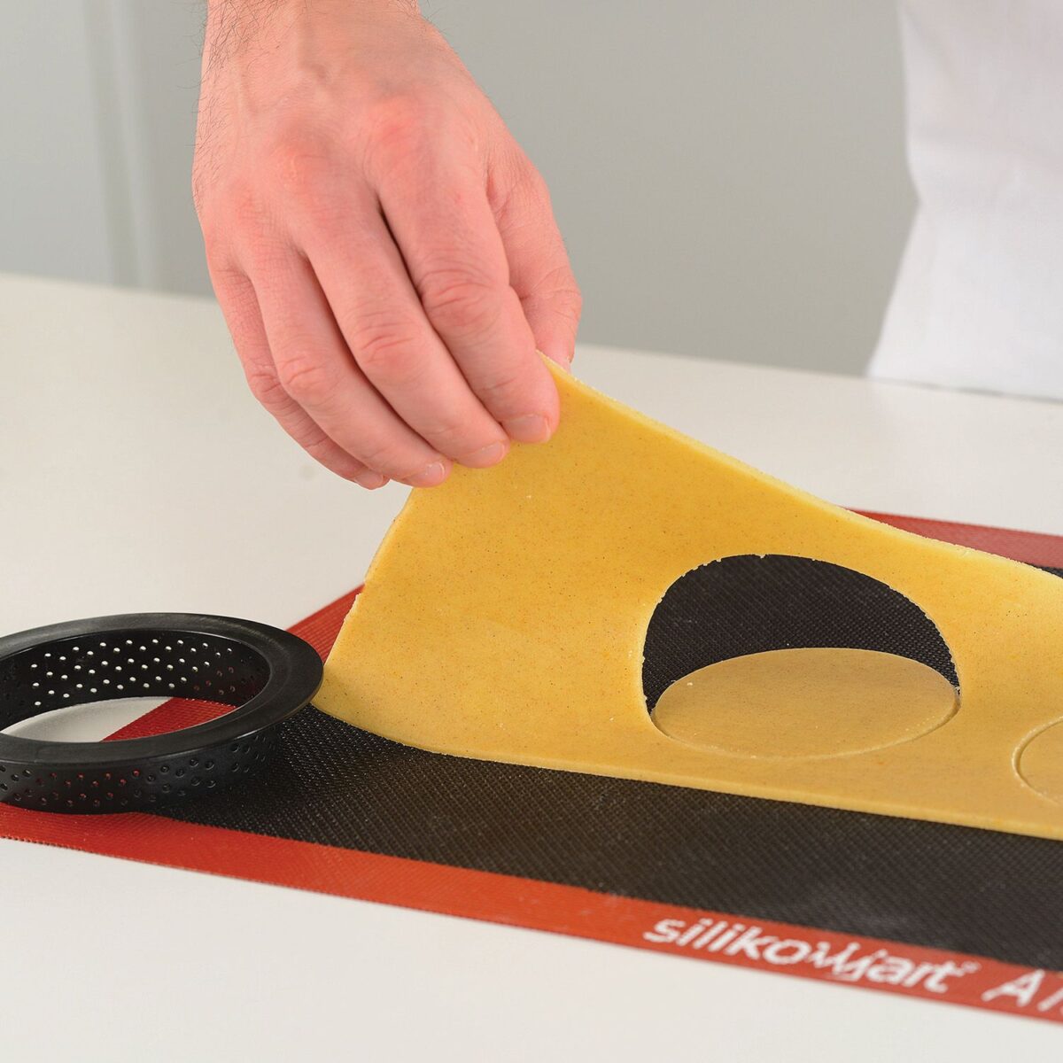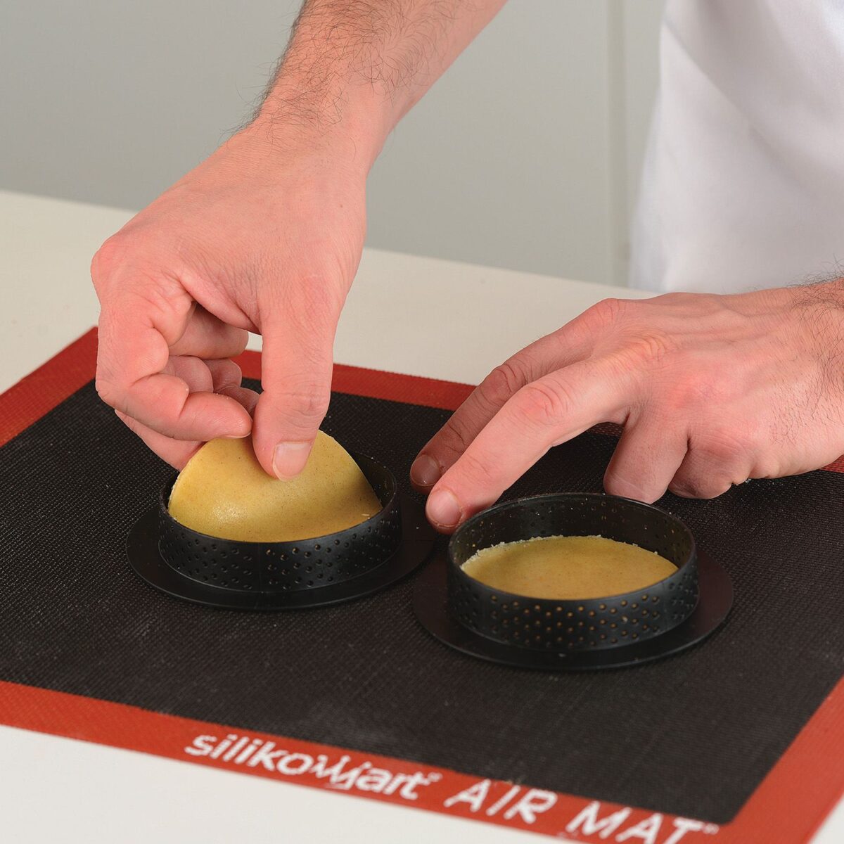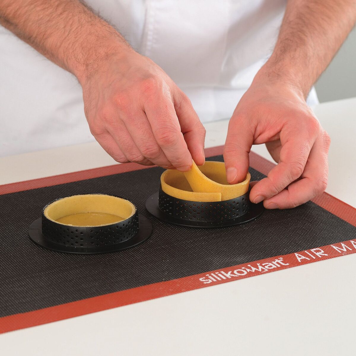 Air Mat 300×400 mm je mikroperforirana silikonska podloga sa jezgrom od staklenih vlakana, savršena za pečenje eklera, kolačića, krofni, sitnih poslastica, hleba i pice. Zahvaljujući mikroperforacijama, toplota se ravnomerno raspoređuje po celoj površini podloge, garantujući savršeno pečenje kako na vrhu tako i na dnu peciva. Podloga je antikliznа i neprijanjajuća, a može se koristiti i kao podloga pri zamrzavanju. Temperaturna otpornost silikona: -60°C do +230°C.