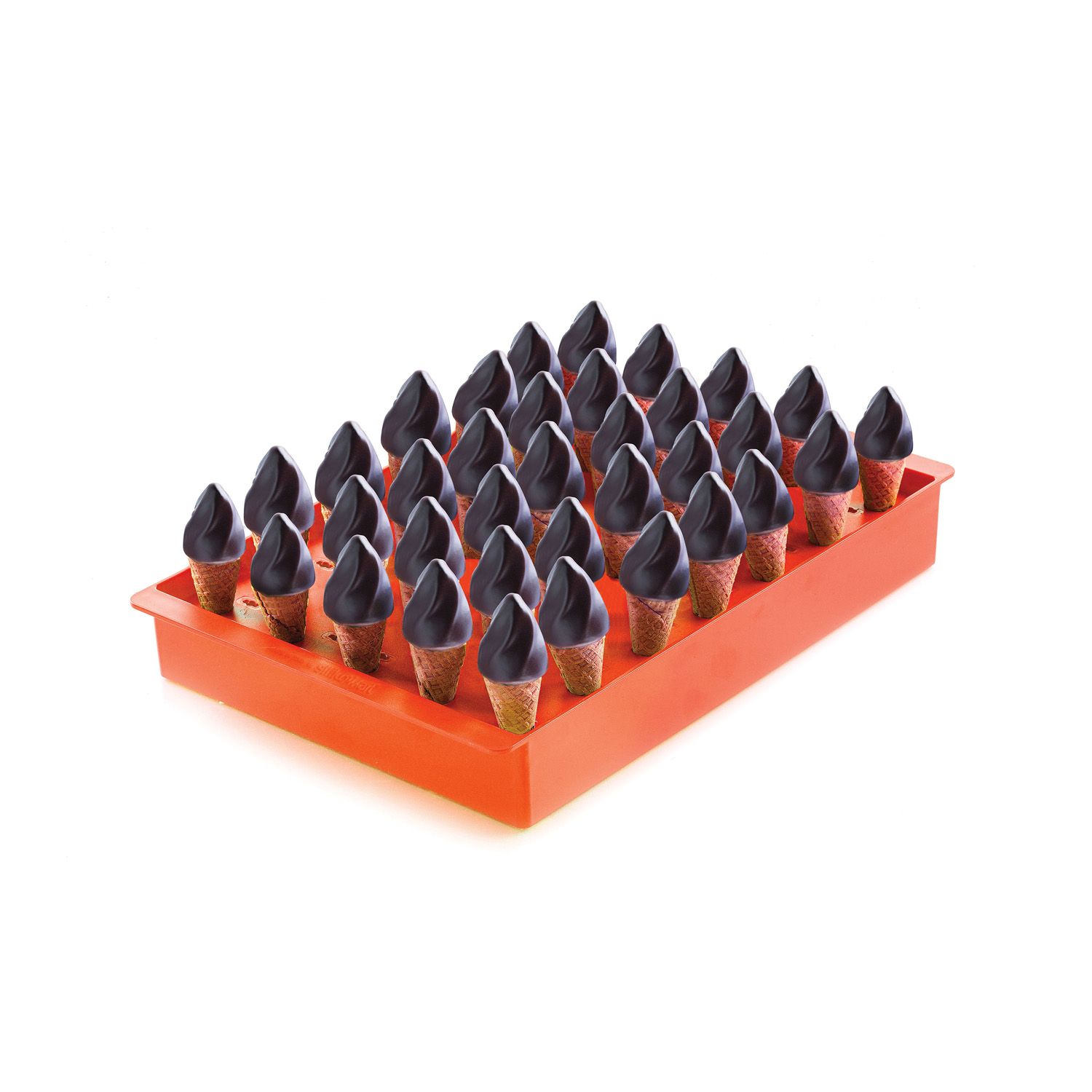 Fiamma je profesionalni silikonski kalup dizajniran za izradu 26 savršeno oblikovanih mini porcija sladoleda u jednoj brzoj operaciji. Ovaj vrhunski proizvod garantuje profesionalnu optimizaciju proizvodnog vremena i besprekorno vađenje iz kalupa. Izrađen od visokokvalitetnog silikona otpornog na temperature od -60°C do +230°C. U pakovanje je uključena polikarbonatna podloga dimenzija 12 x 40 cm.
