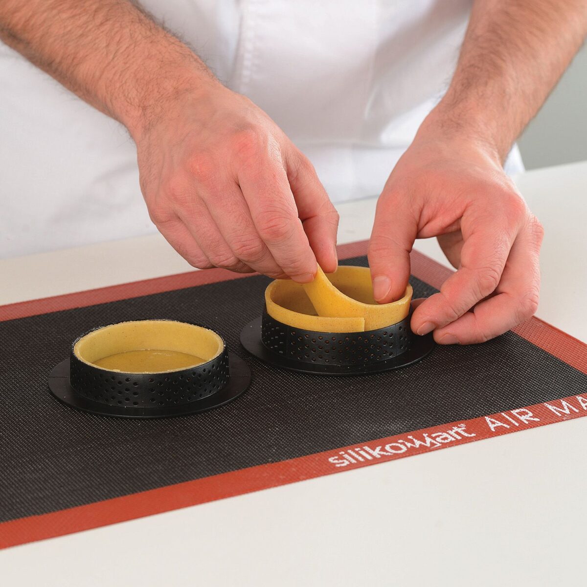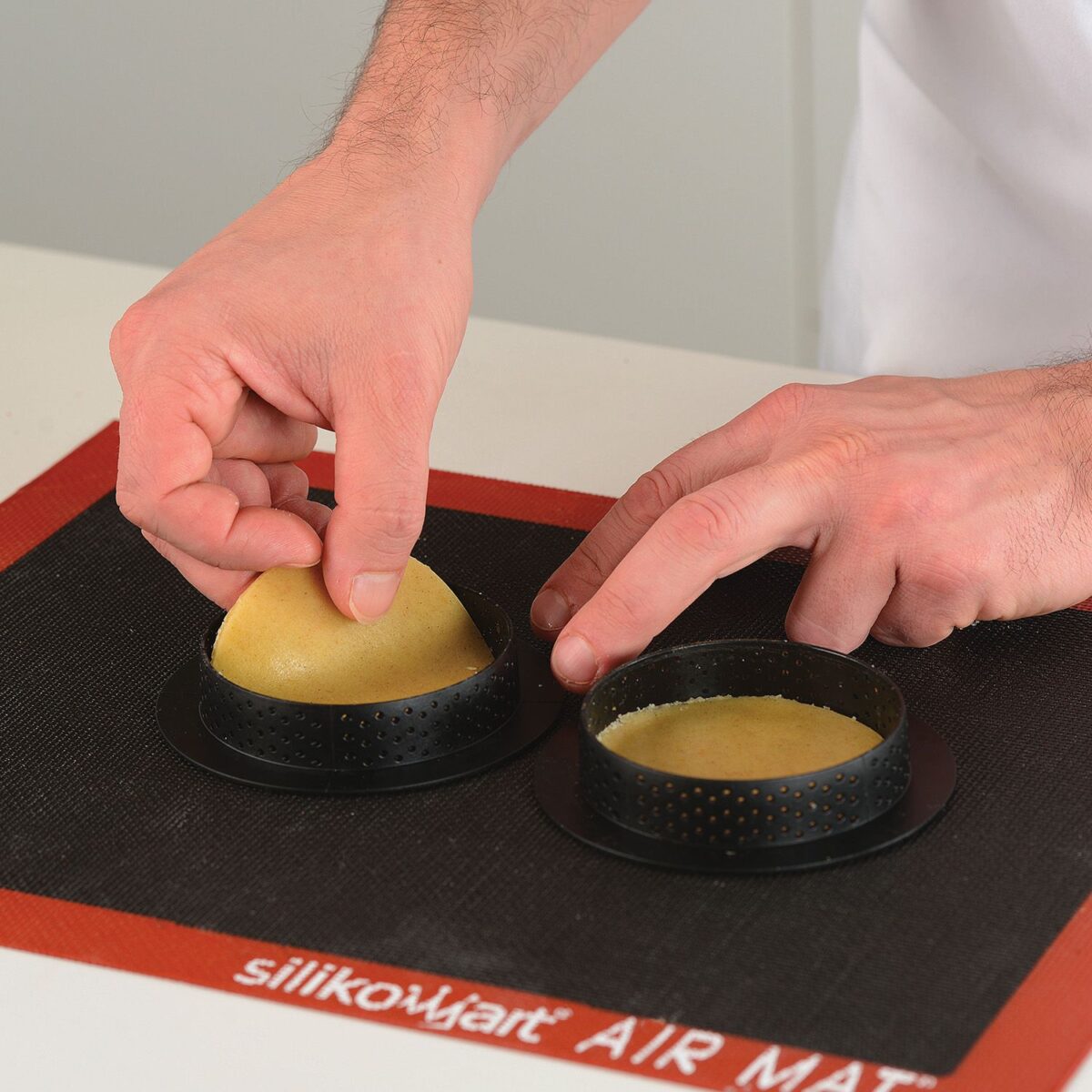Kit Tarte Ring Round Ø80 mm je profesionalni set koji transformiše tradicionalnu pitu u savremeni desert. Komplet se sastoji od dva elementa: 6 termoplastičnih prstenova prečnika 80 mm otpornih na lomljenje i pogodnih za pečenje do 180°C, kao i silikonskog kalupa sa 6 udubljenja prečnika 67 mm za kreiranje musa ili krema. Prstenovi su neprijanjajući i neprljavi, omogućavaju homogeno pečenje i karakterišu se visokom termičkom stabilnošću, što ih čini idealnim kako za upotrebu u rerni tako i u šok frizeru.
