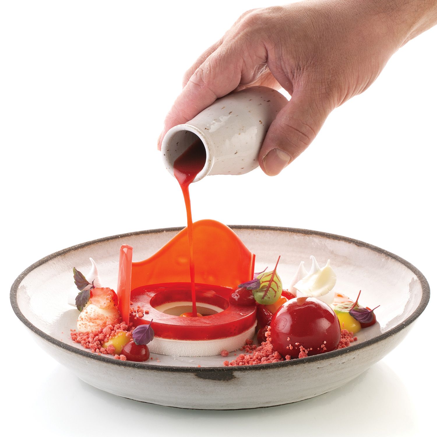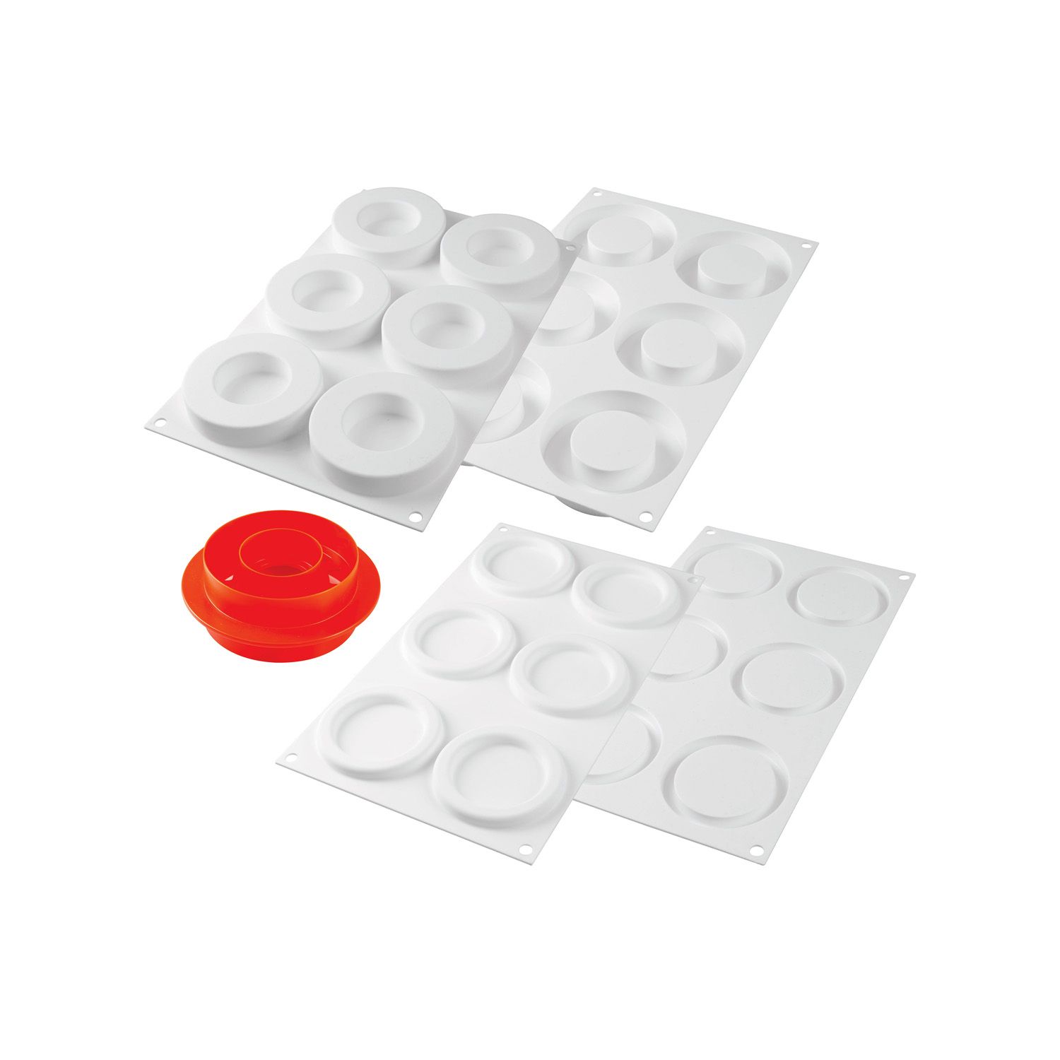 Kit The Ring je sveobuhvatan set silikonskih kalupa koji omogućava kreiranje elegantnih deserata u obliku kruga, simbola jedinstva i harmonije. Set sadrži multifunkcionalni kalup za 6 semifreddo ili pečenih priprema zapremine 65 ml, kalup za 6 inserta i dekoracija od po 13 ml, kao i praktičan dvostrani kalup za inserte i podloge. Idealan za individualne porcije, plated deserte ili originalne deserte za poneti. Otporan na temperature od -60°C do +230°C.