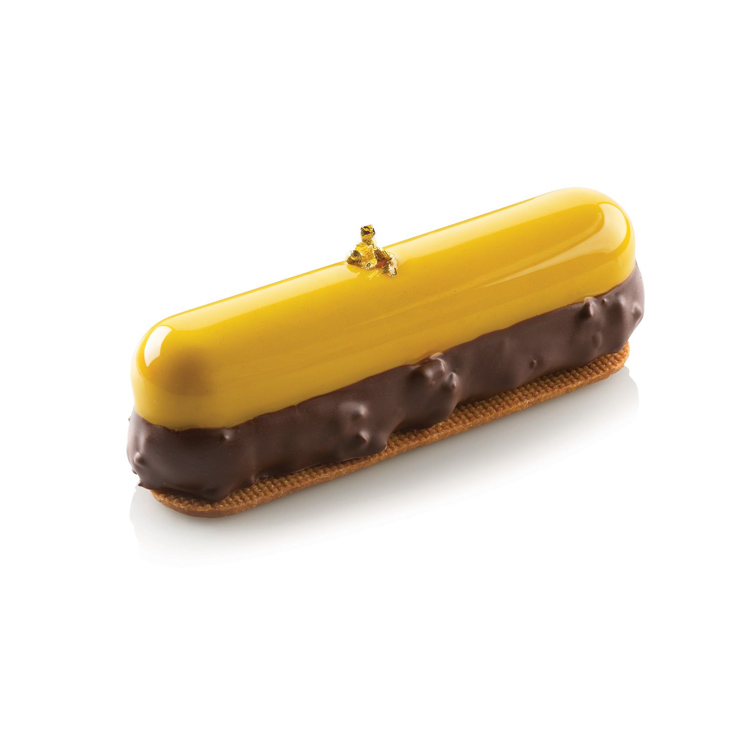 L’Éclair 120 je silikonski kalup koji donosi klasičan oblik eklera u modernom izdanju, savršen za kreiranje rafinianih polusmrznutih deserata sa različitim kombinacijama boja i ukusa. Kalup sadrži 8 udubljenja zapremine 120 ml, idealnih za individualne porcije koje će ulepšati vašu izložbenu vitrinu. U pakovanje su uključene plastične podloge za elegantnu finalnu prezentaciju i rezač za izradu originalnih inserta i baza koje se savršeno uklapaju sa oblikom kalupa. Otporan na temperature od -60°C do +230°C.