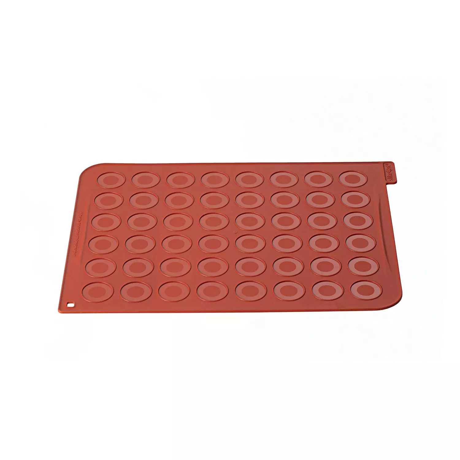 MAC01 je profesionalna silikonska podloga dizajnirana za preciznu i jednostavnu izradu savršenih makaronsa. Podloga sadrži 48 obeleženih krugova sa blago izdignutim ivicama koji zadržavaju smesu i sprečavaju njeno razlivanje, čime se osigurava ujednačena veličina i oblik svakog makaronsa.
