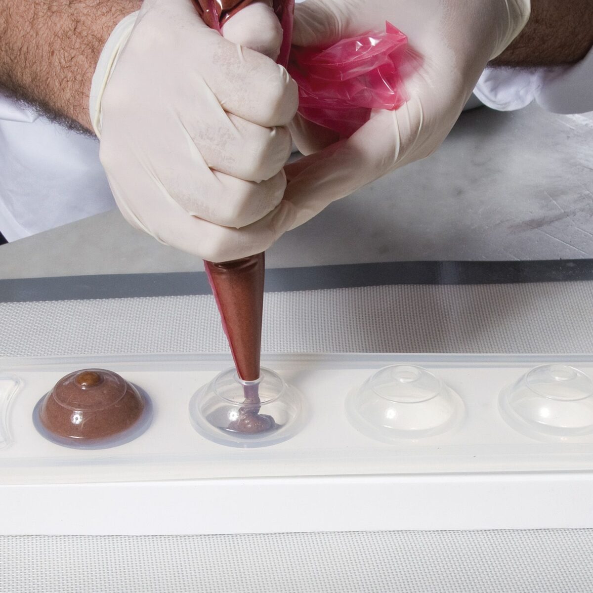 Mul3D 48 je evolucija čuvenog Multiflex kalupa, silikonski kalup koji omogućava pripremu savršenih sfernih deserata i monoporcionih poslastica prečnika 48 mm. Ovaj set uključuje dve polovine kalupa (A i B) i prozirnu podlogu (VGEL03) koja pruža stabilnost tokom zamrzavanja i prepoznatljivost sadržaja. Zahvaljujući transparentnosti silikona, ravnom vrhu sfere za stabilnost i mogućnosti prilagođavanja sa Siliconflex insertima, Mul3D 48 omogućava kreiranje iznenađujućih efekata i inserta koji čine svaki desert jedinstvenim. Otporan na temperature od -60°C do +230°C, ovaj kalup je idealan za blast freezing i lako vađenje gotovih kreacija.