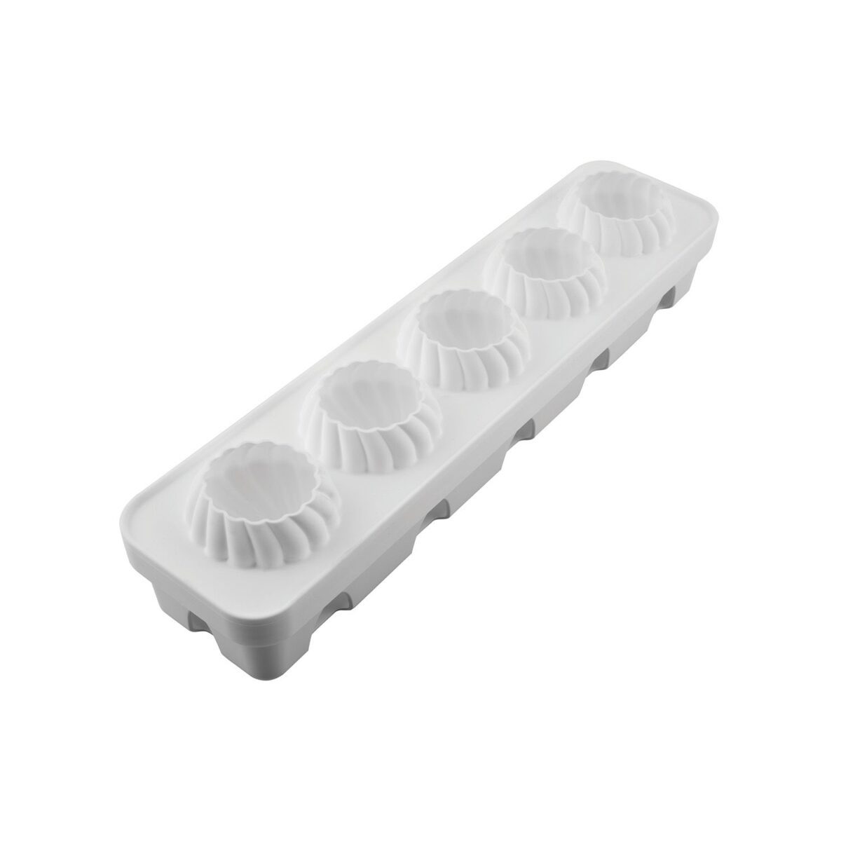 Russian Tale 125 je platinasti silikonski kalup inspirisan tradicionalnom orijentalnom arhitekturom, savršen za pripremu elegantnih i bezvremenskih deserta. Kalup sadrži 5 udubljenja od po 125 ml i dolazi sa plastičnom podlogom koja obezbeđuje stabilnost i olakšava rukovanje tokom rada. Svako udubljenje dimenzija Ø67 x 73,5 mm omogućava kreiranje impresivnih deserta koji će uneti egzotičan šarm u vašu profesionalnu ponudu. Otporan na temperature od -60°C do +230°C.