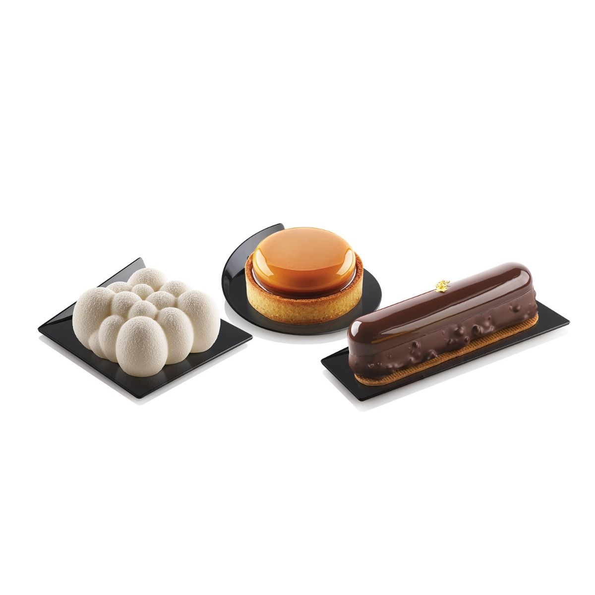 SET 100 BLACK TRAYS – RECTANGLE 140X40 MM je komplet elegantnih i višekratnih plastičnih podmetača idealan za izlaganje, skladištenje i transport pojedinačnih porcija. Inovativna centralna antiklizna sekcija i praktične bočne ivice obezbeđuju stabilnost i jednostavnost rukovanja. Minimalistički dizajn u crnoj boji naglašava estetiku proizvoda, čineći svaku poslasticu elegantnijom i rafiniranom, dok jednostavno održavanje omogućava nebrojeno puta ponovnu upotrebu.