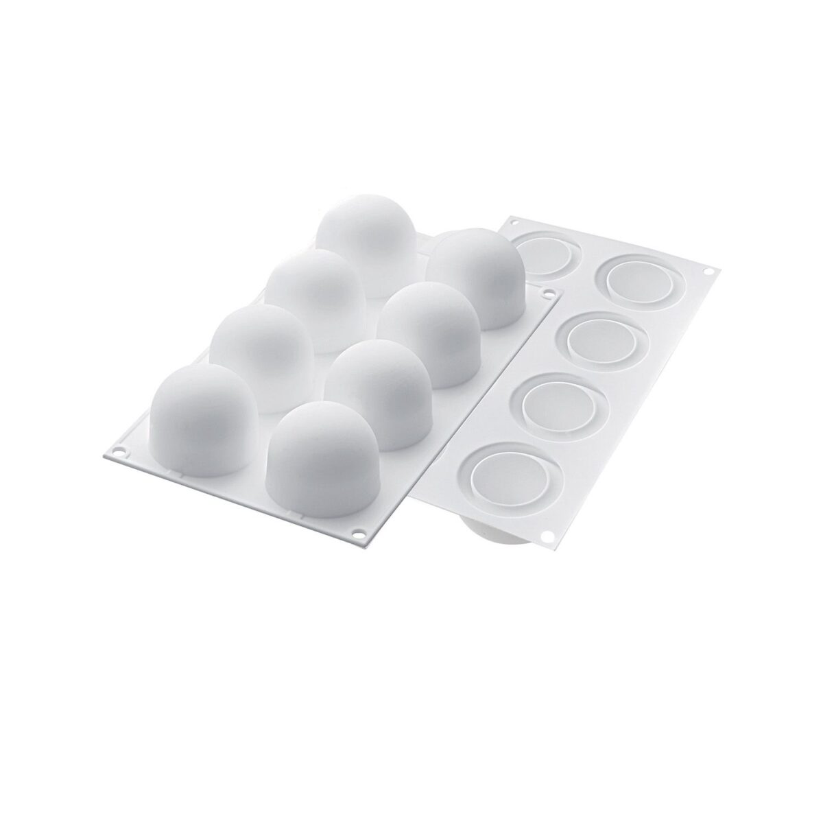 Truffles 70 je profesionalni silikonski kalup iz Silikomart serije, dizajniran za pripremu savršeno sfernih individualnih porcija. Kalup sadrži 8 udubljenja zapremine 70 ml (ukupno 560 ml), dimenzija ø52 x 45 mm visine, idealnih za muse, parfee i semifreddo deserte. Savršen za primenu mattiranja ili Velvet Spray tehnike. Otporan na temperature od -60°C do +230°C, pogodan je za zamrzavanje, pečenje i blast freezing.